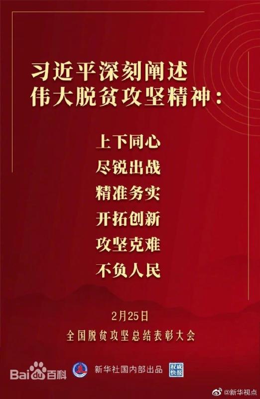 “脱贫攻坚伟大斗争,锻造形成了‘上下同心、尽锐出战、精准务实、开拓创新、攻坚克难、不负人民’的脱贫攻坚精神。”在全国脱贫攻坚总结表彰大会上,习近平总书记深刻总结脱贫攻坚光辉历程,深情回顾脱贫攻坚英模感人事迹,强调全党全国全社会都要大力弘扬脱贫攻坚精神,团结一心,英勇奋斗,坚决战胜前进道路上的一切困难和风险,不断夺取坚持和发展中国特色社会主义新的更大的胜利!