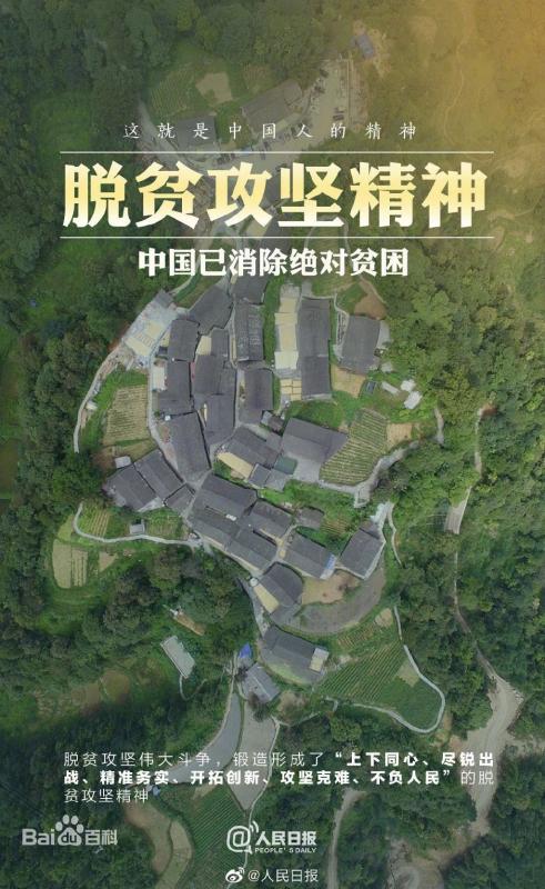 同困难作斗争,是物质的角力,也是精神的对垒。面对贫困这个人类社会的顽疾,党和人民披荆斩棘、栉风沐雨,不仅完成了消除绝对贫困的艰巨任务,创造了又一个彪炳史册的人间奇迹,而且锻造形成了脱贫攻坚精神。在这场声势浩大的脱贫攻坚人民战争中,数百万扶贫干部倾力奉献、苦干实干,同贫困群众想在一起、过在一起、干在一起;广大脱贫群众激发了奋发向上的精气神,努力用自己的双手创造幸福生活;社会各界关爱贫困群众、关心减贫事业、投身脱贫行动,弘扬和衷共济、团结互助美德,生动彰显了脱贫攻坚精神。35年坚守太行山的“新愚公”李保国,献身教育扶贫、点燃大山女孩希望的张桂梅,用实干兑现“水过不去、拿命来铺”誓言的黄大发,回乡奉献、谱写新时代青春之歌的黄文秀,扎根脱贫一线、鞠躬尽瘁的黄诗燕……在脱贫攻坚这个没有硝烟的战场上,无数人把心血和汗水洒遍千山万水、千家万户,用实际行动诠释了脱贫攻坚精神。1800多名同志将生命定格在了脱贫攻坚征程上,他们的付出和贡献彪炳史册,党和人民不会忘记!共和国不会忘记!