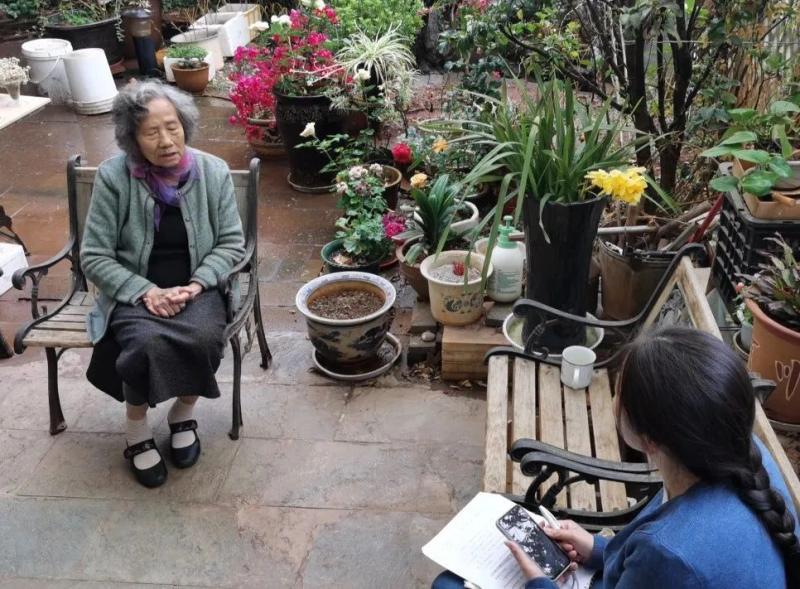 坐在她家开满鲜花的阳台采访,气温有些低,老人家穿着裙子,精神矍烁。担心她着凉,她却一再说没事,她的手的确比记者的手还暖和。