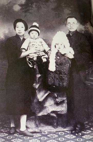 王复生与妻子在哈尔滨,怀中的一对儿女