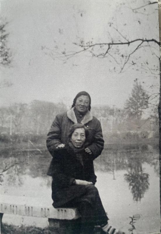 张念先(后立者)与母亲何月华合影