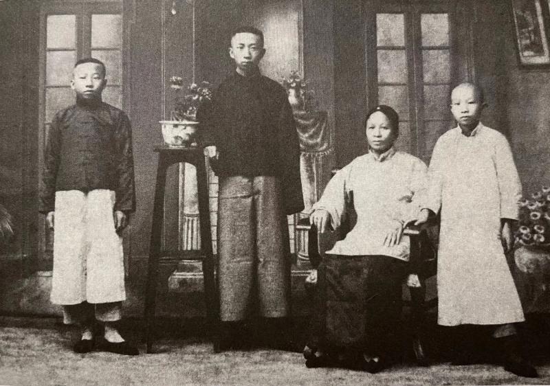 11岁的聂耳(右一)与母亲彭寂宽和两个哥哥