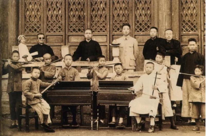聂耳(前排左二弹三弦者)在学校的乐团里