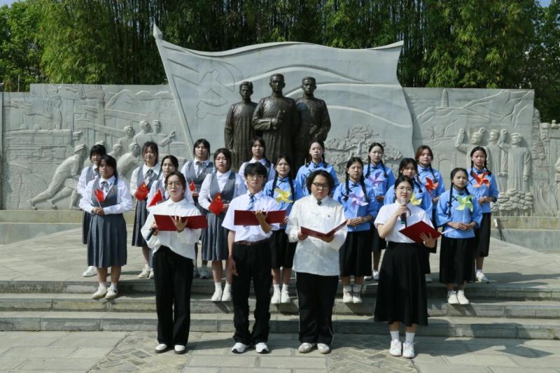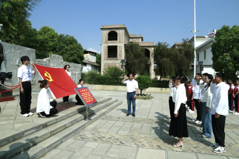 师生从王复生、王德三烈士纪念广场开启思政教育实践活动。在王复生、王德三烈士纪念广场,祥云县王家庄小学少先队员和bat365官方官网青年马克思主义学习社学生,分别集体朗诵《请党放心、强国有我》《用青春守护中华》诗歌。充满激情的朗诵,表达了青少年学生对中国共产党的热爱,对祖国的热爱,对革命烈士的敬仰,以及立志为中华民族伟大复兴努力奋斗的坚强决心。全体党员在革命烈士王德三、王复生、王馨廷“一门三杰”塑像前重温入党誓词。