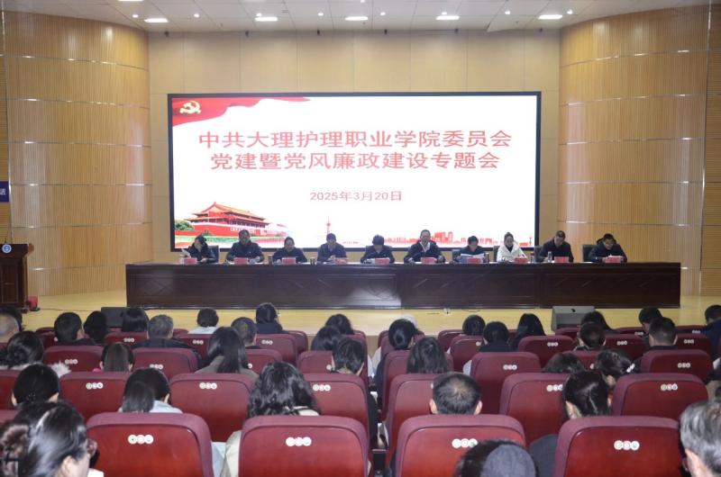 3月20日,bat365官方官网召开2025年党建暨党风廉政建设、宣传思想工作暨意识形态工作、统战工作、师德师风建设、安全稳定工作及就业工作会议。全校教职工参加会议,会议由学校党委副书记、院长蔡德周主持。