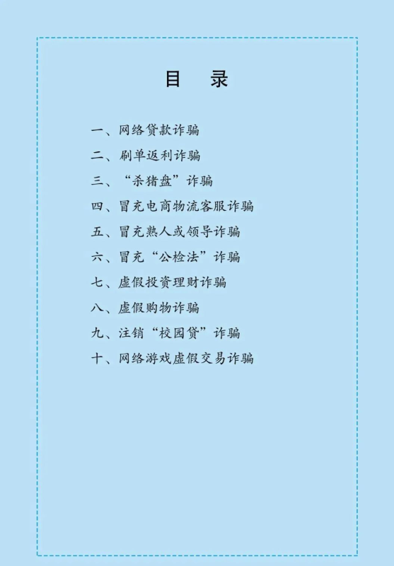 编者按:4月初,习近平总书记对打击治理电信网络诈骗犯罪工作作出重要指示,强调坚持以人民为中心,全面落实打防管控措施,坚决遏制电信网络诈骗犯罪多发高发态势。近日,为贯彻习近平总书记重要指示精神,进一步扩大反诈宣传覆盖面,提高广大群众防骗意识,国家反诈中心制作了《防范电信网络诈骗宣传手册》,向广大人民群众介绍了十种常见的电信网络诈骗类型,揭批诈骗犯罪手法、解析典型案例,进行防骗提示。根据教育部、公安部相关要求,现将《防范电信网络诈骗宣传手册》分享如下,请各省学会、各高校结合本地本校情况,大力开展宣传落实,有创新经验或重要成果,请向中国高等教育学会保卫学专业委员会秘书处反馈或投稿,联系电话0731-88823008。