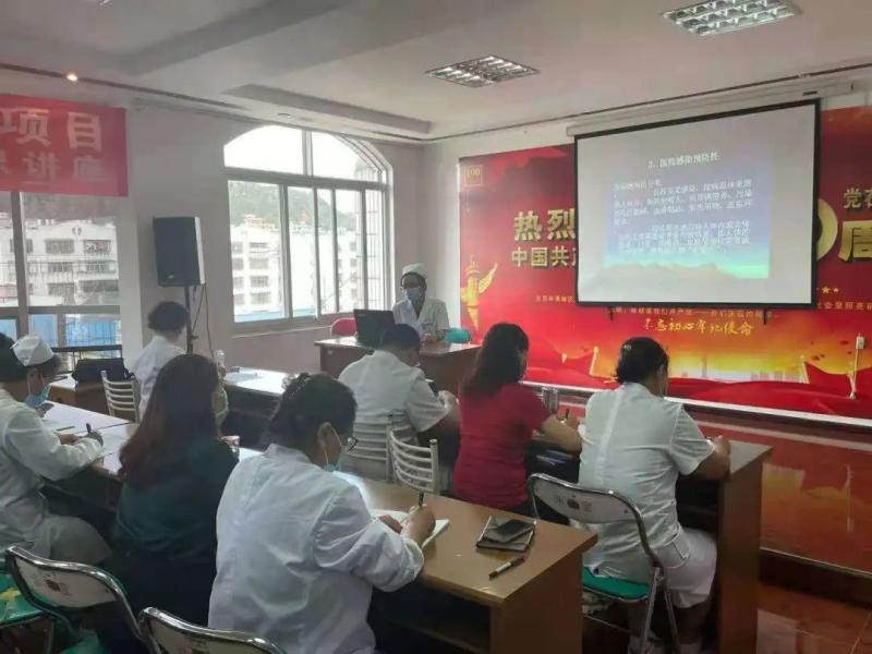在8月4日下午业务培训中,首先由内科关建军副主任医师进行《新型冠病毒肺炎诊疗方案试行第八版》解读,护理部杨啟业护士长给大家讲《医院感染管理知识培训》。