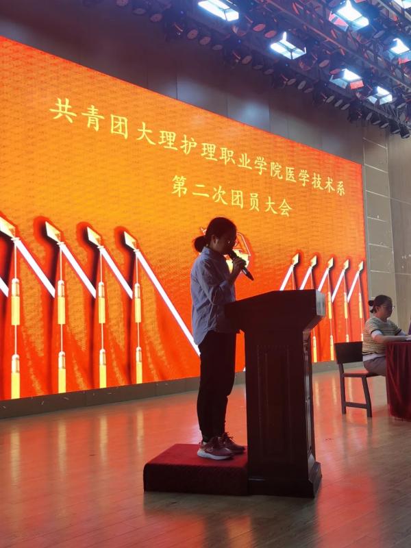大会在庄严的国歌声中拉开序幕。校团委书记张磊老师代表校团委发言,对医学技术系第二次团员大会的召开表示热烈的祝贺,肯定了系团委三年来在思想引领、深化组织改革、服务学生成长成才等方面的成就,对即将当选的新一届委员会提出建议。系党支部书记李丹老师代表系党支部讲话,提出三点要求:一是要以政治引领为根本,听党话、跟党走,增强团组织的政治性;二是以服务同学为宗旨,务求工作实效;三是要争当先锋,发扬好团员先进模范作用。系团委书记姚艳云老师代表上一届委员会做工作报告,总结了三年来的成果,分析存在的问题和不足,以及今后的努力方向和工作计划。