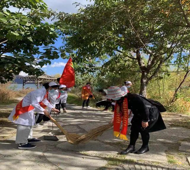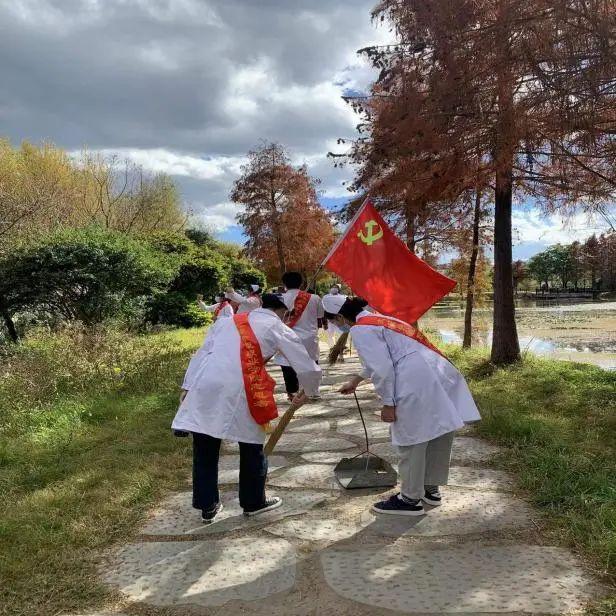 活动中,师生们相互协作、分工明确、各司其职,对沿街道路和湿地公园中的烟头、树叶、杂草、塑料袋、果皮、废弃纸张等进行了清扫,并积极向商铺和游客宣传疫情防控相关知识。