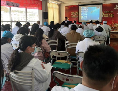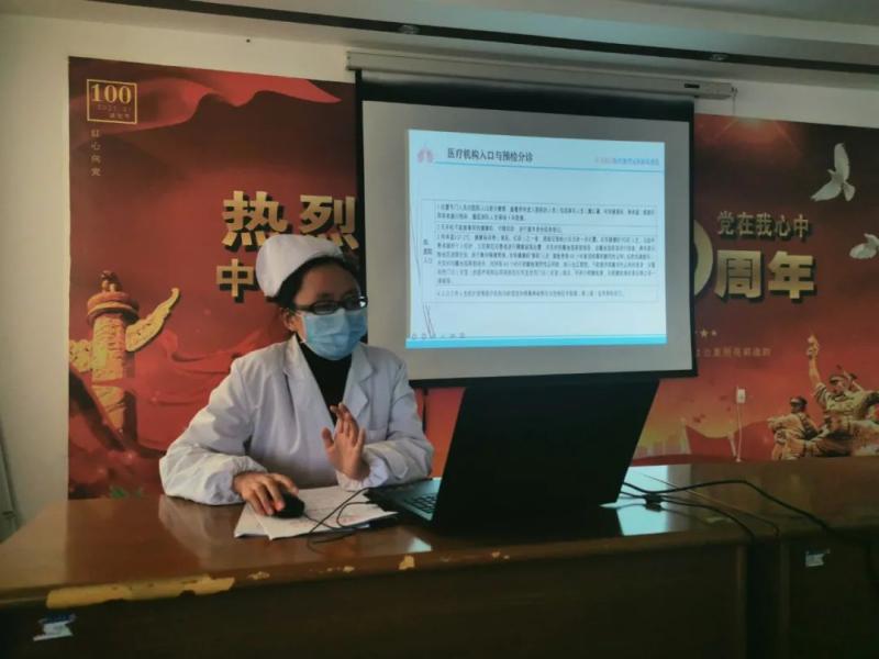 廖建东副主任通报了大理州卫生监督局督导检查医疗机构疫情防控存在的相关问题,针对门诊部存在的问题做了相关要求,第一要加强预检分诊点检查能力,严格落实预检分诊制度,切实强化首诊负责制,所有进入门诊的人员落实“口罩必戴、体温必测、健康码必查、行程码必看”的要求,加强对就诊患者新冠肺炎关联症状、服药史、旅居史、接触史、职业史和聚集性活动史的询问,并准确记录就诊人员和可疑患者的陪同人员的基本信息、相关症状及病史,做到不漏一人。第二严格落实进入医院车辆除司机外的人员全部下车接受预检分诊。第三必须做好发热患者分诊登记、储备一定的防护物资、规范使用手消液要求,候诊时严格落实1米线要求,防止人员聚集。同时针对《医疗机构内新型冠状病毒感染预防控制技术指南(三版)》进行解读。院感防控负责人杨啟业讲授“疫情防控常态化下医疗机构如何做好感染防控”。重点讲解了预检分诊医务人员着装流程、预检分诊异常健康码处置流程、门诊医务人员防护用品选用原则、终末消毒(医疗废物的贮存)和预防医务人员感染个人防护常见问题等内容。