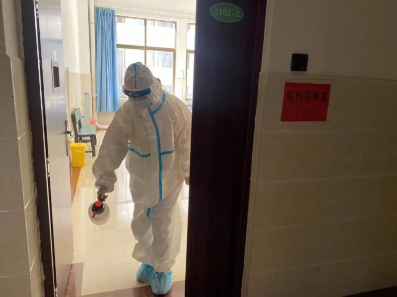 会后,校医室进行了应急演练。演练现场模拟发热患者到校医室就诊的场景。从预检分诊排查、临时隔离室隔离、上报相关部门、转运患者到校医室终末消毒等多项异常情况的处理,力求演练全面细致。医务人员按既定预案,流程规范、密切配合、互相协调,有序地完成了演练。