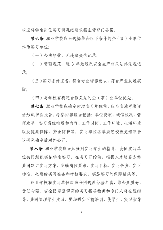 上一篇:教育部等八部门关于印发《职业学校学生实习 管理规定》的通知