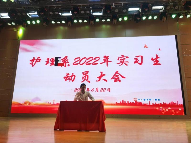 为进一步做好实习工作,加强同学们对实习重要性和必要性的认识,引导学生做好实习的各项准备,6月22日,护理系在第一报告厅举行了2022年实习动员大会。全体实习生、各班级班主任、辅导员参会。