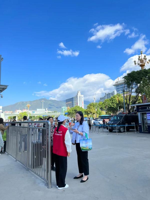 4月29日至5月6日,bat365官方官网团委组织招募128名志愿者,到大理火车站开展“五一”劳动节、“三月街”民族节假期间大理文明和谐、安全有序的“文明旅游”志愿服务活动,引导游客文明、安全、绿色旅游。