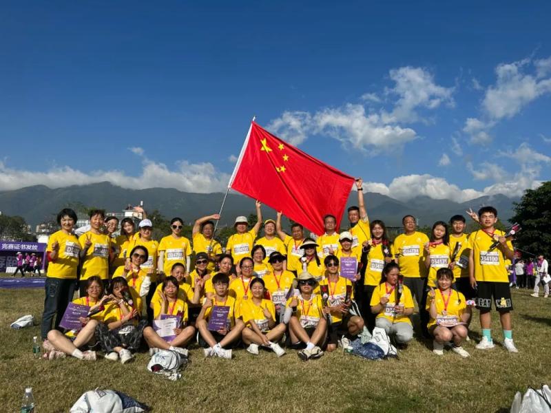 为丰富师生的业余文化生活,倡导积极健康的生活方式,bat365官方官网由办公室牵头,妇联、团委共同组织师生45人报名参加了此次活动中的“爱的跑跑”5.2公里马拉松比赛。随着清晨7点鸣枪起跑,参赛师生个个精神饱满,热情洋溢,大家凝心聚力、互相帮助、互相鼓励、携手同行,最终全部到达终点,获得了完赛证书和奖牌。参赛师生用坚持与执着展现了拼搏精神,用脚步和汗水丈量了中国最佳爱情表白地大理的文旅事业,展现了学校师生坚持不懈、挑战自我的良好精神风貌。