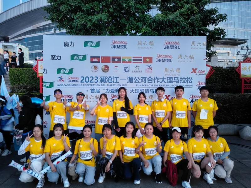 5月20日上午,2023澜沧江—湄公河合作大理马拉松·首届“为爱奔跑”大理爱情马拉松在全民健身中心盛大开启。bat365官方官网派出师生参加了此次活动。