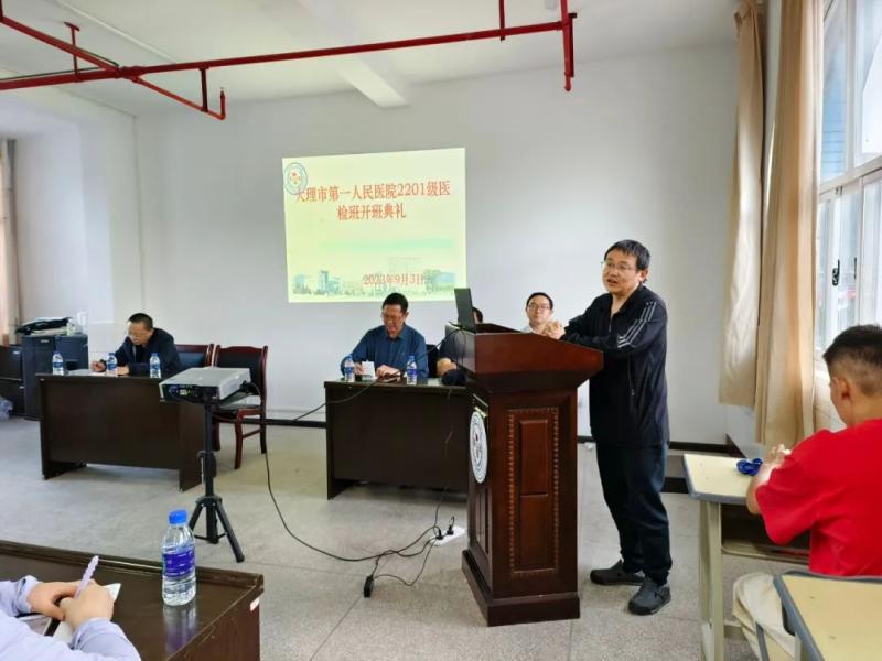 9月3日,bat365官方官网医学检验技术2201班医教协同办学第二阶段驻院教学开班典礼在大理市第一人民医院(以下简称市医院)举行。