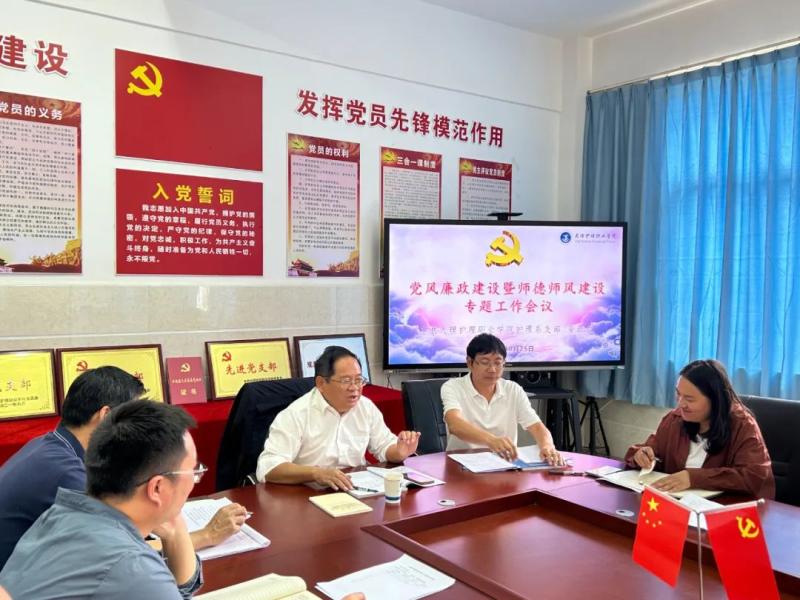 郭向周副院长就护理系加强党风廉政建设暨加强师德师风建设作指导和提工作要求。他要求,一是要加强学习党纪党规;二是要加强廉洁自律意识;三是要严格遵守高校教师十项行为准则。