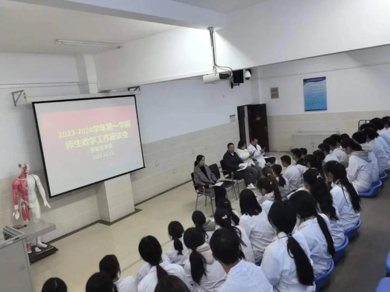 2023年12月11日下午,康复技术系在志远楼三楼309教室召开2023-2024学年第一学期师生教学工作座谈会。进一步全面了解学生的思想、近期学习状况和在专业学习中遇到的问题,给学生们提供一个畅所欲言的平台,营造良好的育人环境。康复技术系主任杨庆堂、副主任李波、教学管理学科长杨泽冠、中医教研室主任何洲、康复教研室主任周宇菲及康复技术系在校学生班班长、学习委员参加会议。李波老师主持会议。