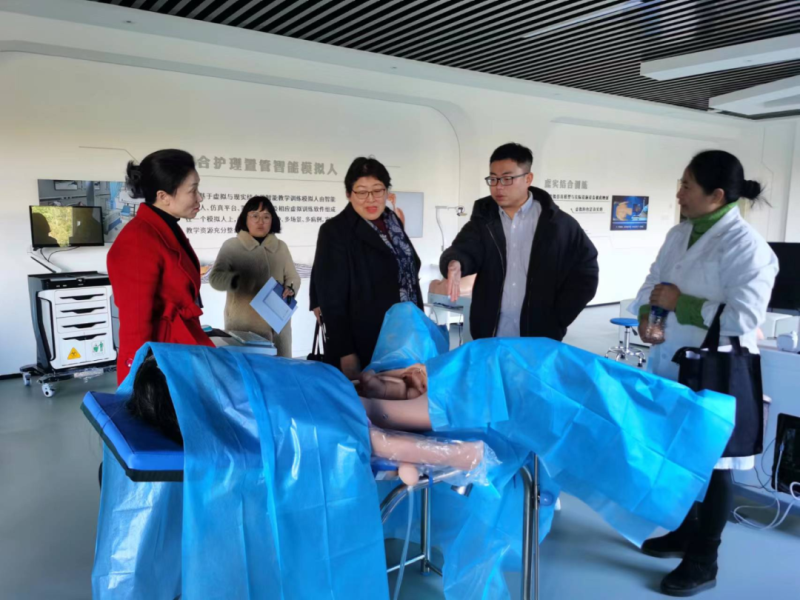 调研组一行还深入到护理虚拟仿真实训室进行实地调研。学校统战部、知联会、护理系相关教师参加调研。
