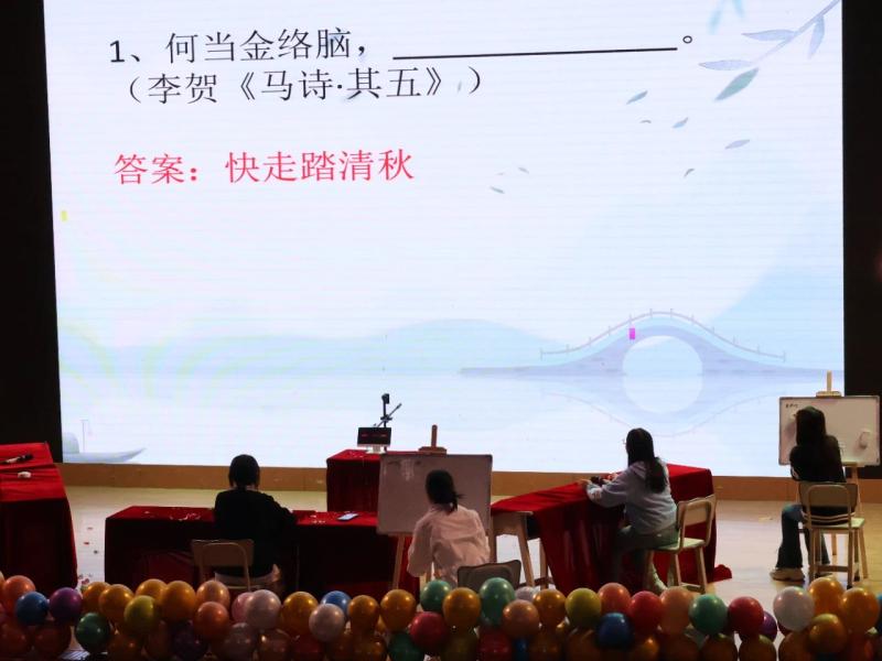 中华诗词经典永恒,历久弥新,源远流长。此次诗词挑战大赛,是我校师生共赴诗词之约、共享诗韵之美、共品诗歌之雅的一次文化之旅。让我们不断深挖中华经典诗词中所蕴含的民族正气、爱国情怀、道德品质和艺术魅力,让校园诗词文化熠熠生辉、经久不衰。