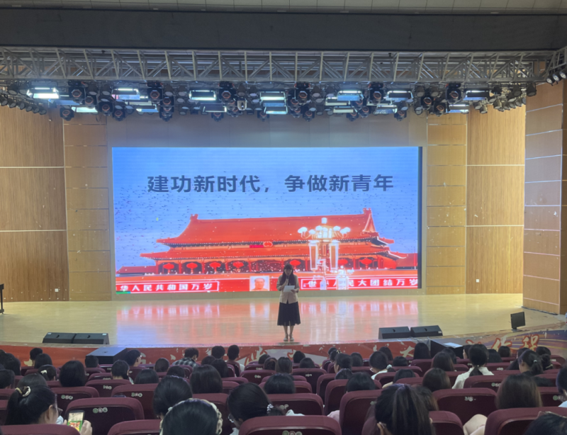 青年教师朗诵《建功新时代,争做新青年》诗歌,表达新时代新青年要心怀家国,情系人民,坚定信念信仰,披荆斩棘、砥砺前行,用青春的力量书写时代炫丽华章的决心和志向。