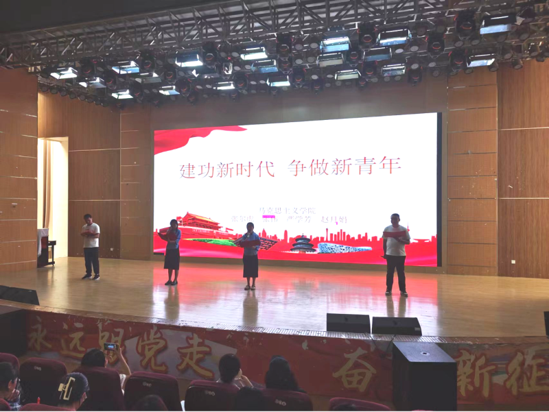 活动首先由马克思主义学院副院长张建英老师致辞。活动中,师生同台演出,共同演绎精彩节目,讴歌党的百年辉煌成就,秉承五四精神,展现建功新时代的青春担当,献礼中国共产党103周年华诞。