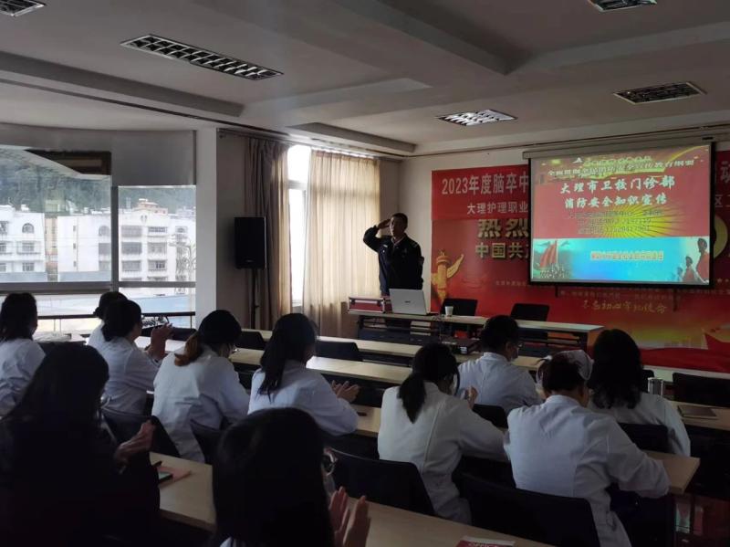 活动邀请了大理政安消防中心李警官授课。李警官通过火灾案例分析,结合图文和现场演示等方法,生动、直观地讲解了潜在的火灾安全隐患,教授了简易灭火设备设施的使用方法;初起火灾的扑救方法;逃生自救的各种技能等内容。特别强调了在医院各场所中突发火灾需要采取的应急措施、步骤和报警程序等。