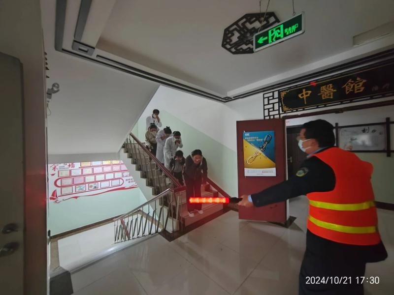 应急演练现场,模拟科室突然发生火灾,警报响起后,门诊部应急救援小组快速反应、密切配合,将患者全部转运至安全集中点,整个过程井然有序,各个环节有条不紊,灭火救援快速、准确,达到演练效果。