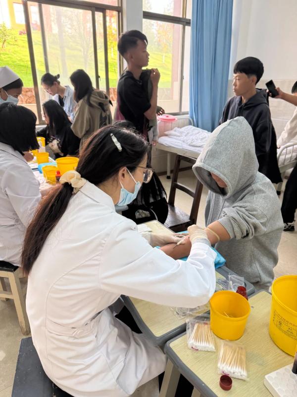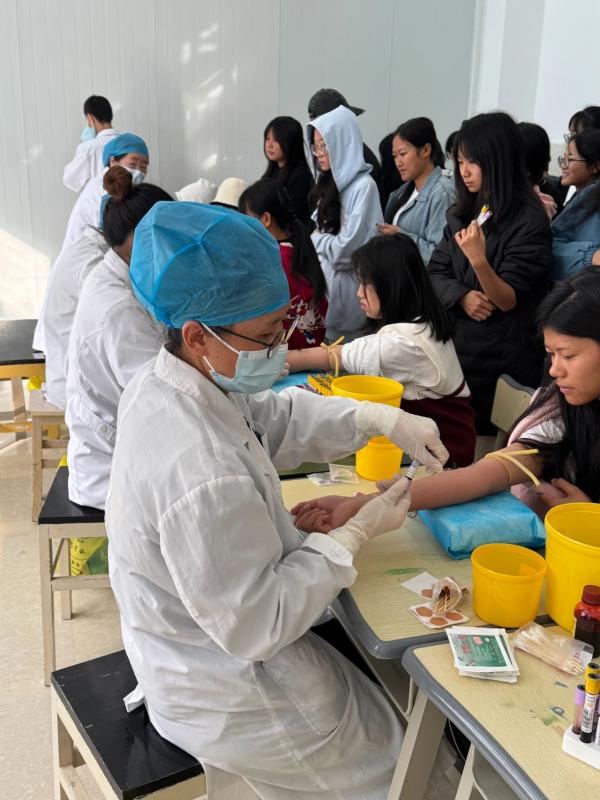 晨曦刚至,护理系和门诊部的党员们、入党积极分子早早来到活动现场 ,布置体检场地,准备采血体检用品。技术娴熟的党员护士给体检学生进行血样的采集,医生党员们认真给学生体检,入党积极分子主动维持次序,为体检的同学们提供了细致入微的暖心服务,赢得了学生们的一致称赞。