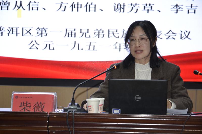 云南省民族宗教委铸牢中华民族共同体意识宣讲团讲师,学校妇联执委、马克思主义学院思想道德与法治教研室主任柴薇主讲。柴薇以“深入学习贯彻党的二十届三中全会精神暨铸牢中华民族共同体意识”为主题,通过普洱盟誓碑和独龙族脱贫的故事,紧紧围绕进一步全面深化改革、推进中国式现代化,要把铸牢中华民族共同体意识作为新时代党的民族工作和民族地区各项工作的主线,从中华民族伟大复兴和百年未有之大变局两方面分析铸牢中华民族共同体的原因,号召广大青年深入学习贯彻党的二十届三中全会精神,特别是学习贯彻习近平总书记关于全面深化改革的一系列新思想、新观点、新论断,深刻领悟“两个确立”的决定性意义,增强“四个意识”、坚定“四个自信”、做到“两个维护”,最广泛地把青年团结起来、组织起来、动员起来,为推进强国建设、民族复兴伟业挺膺担当、团结奋斗。柴薇老师用师生熟悉的语言,既有对理论政策的深刻解读,也有对鲜活事例的生动剖析。宣讲主题鲜明、内容生动丰富,师生印象深刻。