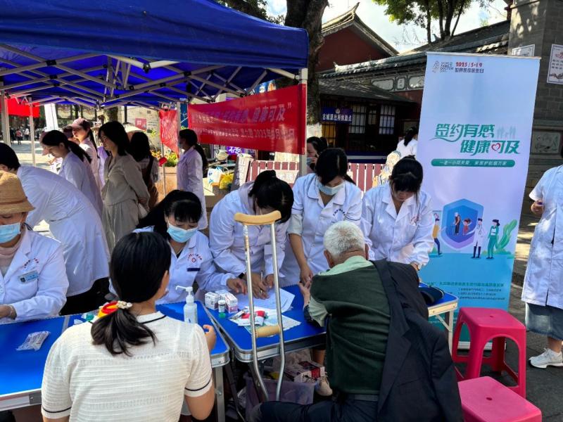 522日,学校门诊部受大理市卫健局邀请,到大理古城开展“家庭医生签约”义诊宣传活动。活动现场,门诊部社区公卫科工作人员通过悬挂宣传主题标语、向广大居民群众宣传“家庭医生签约”服务意义和内容、合理膳食、中医药保健知识、家庭医生团队、签约服务的内容、服务方式和优惠措施等活动;传播以签约服务促进健康管理的理念,增加家庭医生团队社会美誉度,提高居民签约的积极性。活动中,门诊部工作人员还为居民测量血压,测血糖,并对居民提供中医推拿等康复义诊服务。