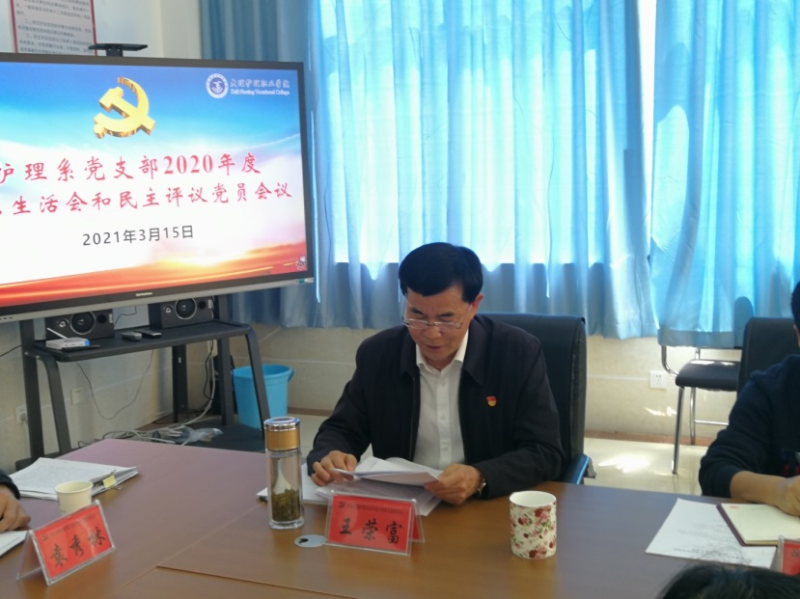 根据学院党委的统一部署,3月15日,护理系党支部召开2020年度组织生活会,并开展民主评议党员工作。组织生活会紧紧围绕“认真学习贯彻习近平新时代中国特色社会主义思想,学习贯彻党的十九届五中全会精神,巩固深化‘不忘初心、牢记使命’主题教育成果,加强政治建设,提升基层党组织政治功能和组织力,增强“四个意识”、坚定‘四个自信’、做到‘两个维护’,为党和人民事业不懈奋斗”这个主题进行。