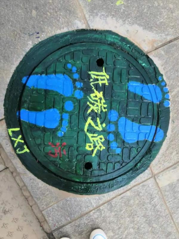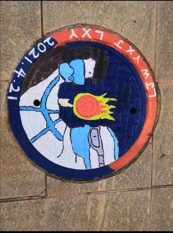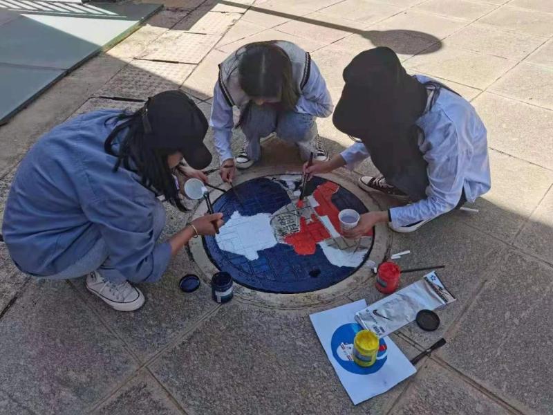 同学们利用课余时间,纷纷走出教室,拿起画笔,发挥天马行空的想象力,用巧妙的创意和艺术构思妙笔生花,在原本不起眼的井盖上描绘出她们内心对校园浓浓的眷恋和情怀,她们用自己的行动来增添校园的美丽。