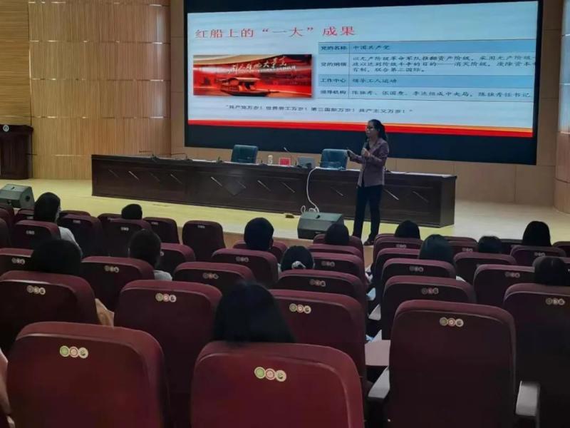 伍孟珺老师以时间为主线,讲述了从俄国十月革命将马克思主义送入中国到1921年7月,中国共产党第一次全国代表大会因遭法租界巡捕的袭扰,从上海转移到嘉兴南湖的一条游船上继续举行。就是在这条游船上,伟大的中国共产党诞生了。中国革命的航船,从1921到2021,中国人民在中国共产党的带领下,劈波斩浪,把中国建设成了今日伟大而繁荣的社会主义强国。红船精神是开天辟地、敢为人先的首创精神,是坚定理想、百折不挠的奋斗精神,立党为公、忠诚为民的奉献精神。