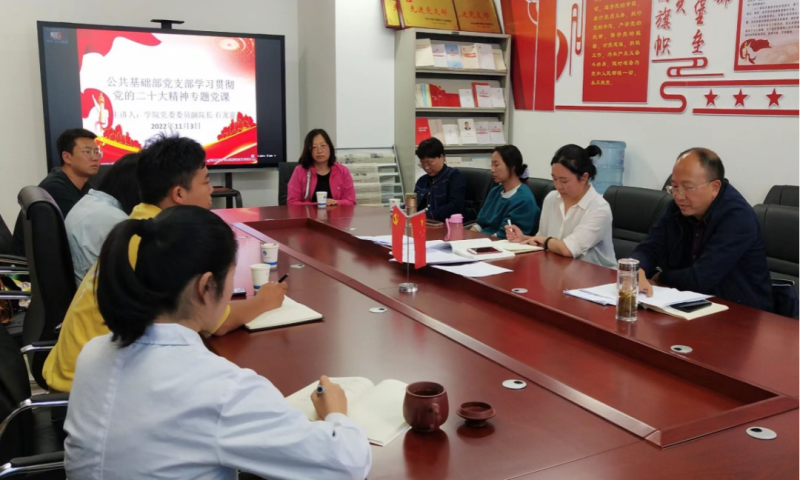 11月3日,bat365官方官网公共基础部党支部积极响应学校党委号召,开展学习宣传贯彻党的二十大精神专题党课。联系支部的党委委员、副院长石龙富同志为全体党员作专题党课,支部书记钱雪娟同志主持会议。