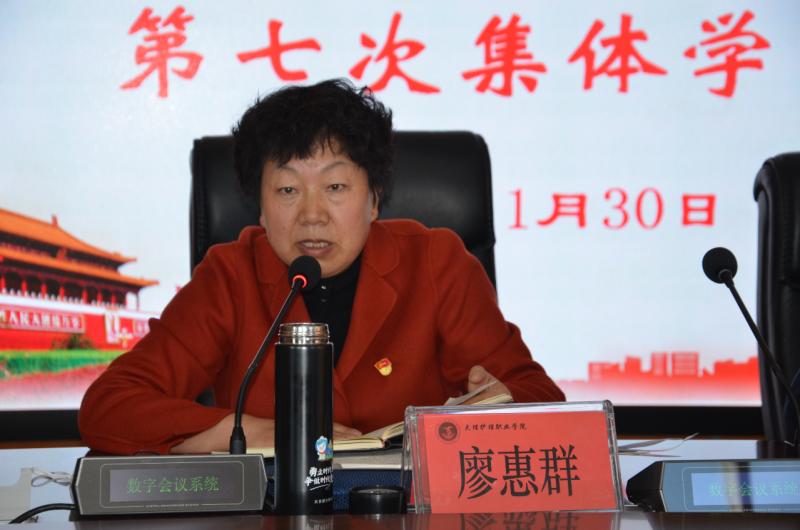 11月30日,bat365官方官网党委理论学习中心组举行2022年第七次集体学习。会议以深入学习宣传贯彻党的二十大精神,踔厉奋发,勇毅前行,谱写特色鲜明高职院校新篇章为主题。学校党委书记廖惠群主持会议。