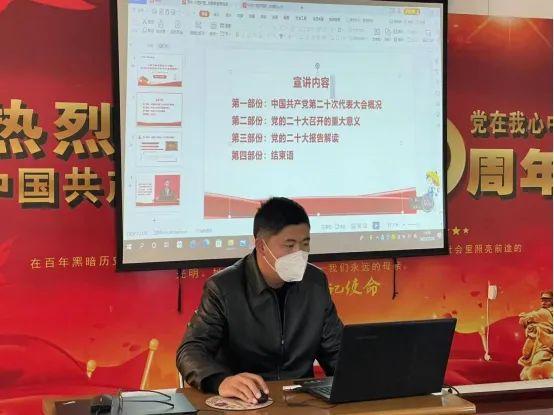 报告会上杨品同志为门诊部全体党员和职工作了题为:《凝心聚力为全面建设社会主义现代化国家团结奋进》的专题报告。他从三个部分进行阐述:一是中国共产党第二十次代表大会召开的概况;二是党的二十大召开的重大意义;三是党的二十大报告的解读。