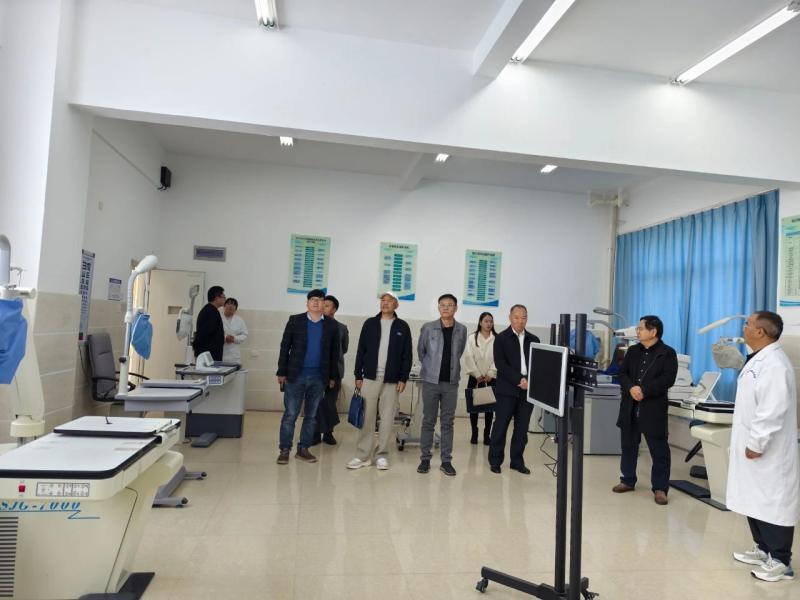 考察组一行先后考察了学校医学技术系眼视光技术实训基地、康复技术系中医康复实训基地和护理系虚拟仿真实训基地。