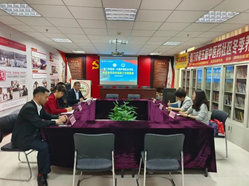 在厦门华医馆,詹董事长、马院长带领廖书记一行首先参观了思明区华医馆各科室布局及诊疗情况,详细介绍了华医馆的中医正骨、推拿针灸、中药调理、刮痧、拔罐、刺血、中药贴敷、艾灸、光波、药浴、牵引等传统医学诊疗特色。随后,就华医馆和学校从中职到高职合作15年来,在学生实习就业等方面进行了座谈。廖书记感谢华医馆多年来对我校教育教学的支持和帮助,在国家大力发展大健康产业的时代背景下,学校将进一步深化和华医馆的合作和交流,着力办好我校健康、养生、养老等大健康相关专业。