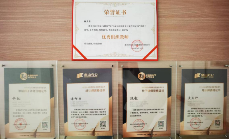 自启动“1+X”WPS办公应用职业技能等级证书试点工作以来,我校已先后有4名教师取得培训资格证书,并顺利完成考核点和证书试点的申报工作,制定出了一套考务实施、考生信息查询、监考人员培训、无纸化考试的完整考试方案,确保了90分钟的考试过程井然有序。