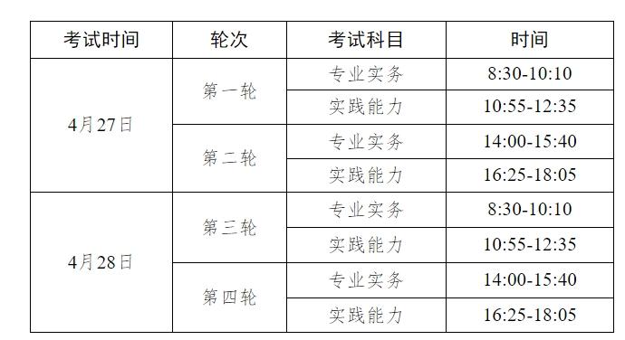 (二)考试时间:2024年4月27-28日(每场考试时间为100分钟),具体安排如下: