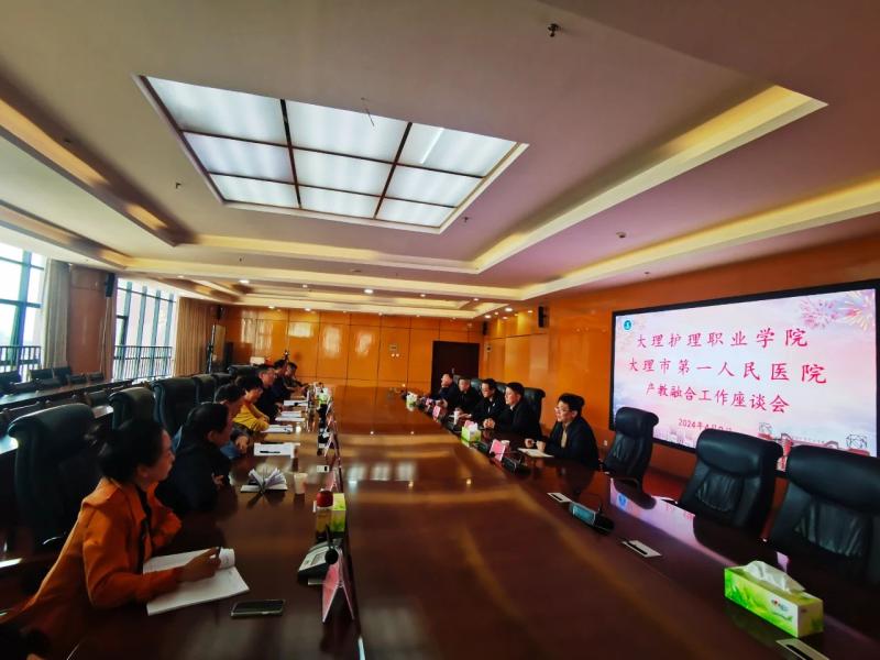 4月9日下午,bat365官方官网与大理市第一人民医院召开“bat365官方官网与大理市第一人民医院产教融合工作座谈会”。会上,学校和医院领导针对“如何产教深度融合,创新人才培养模式?”进行了深层次的研究。学校和医院双方达成共识,均认为校企合作、产教融合是顺应国家、社会发展需要。学校和医院将加强深度合作,实现产教深度融合,进一步开展多层次、多形式、多领域的合作,实现学校和医院资源的有机结合、优化配置,共同在创新人才培养模式,促进学生就业等方面持续发力。学校和医院双方洽谈还计划通过发挥各自平台和基地作用,开展多领域合作,探索“校院合作、产学研结合、资源共享、互惠双赢”的发展之路,探索“立项目、出成果、即转化"的一体式校院融合模式。