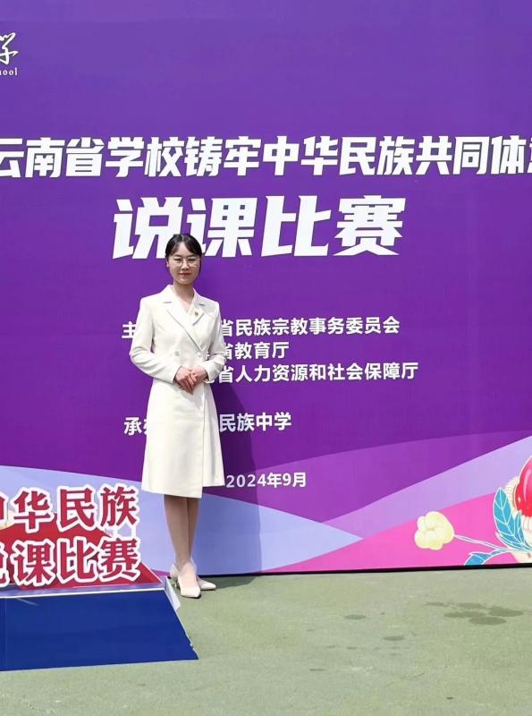 9月21日,bat365官方官网思政教师李婷参加“2024年云南省学校铸牢中华民族共同体意识教育说课比赛”取得了优异成绩。经过激烈角逐,李婷老师以《石榴花开 籽籽同心》荣获中职组一等奖。