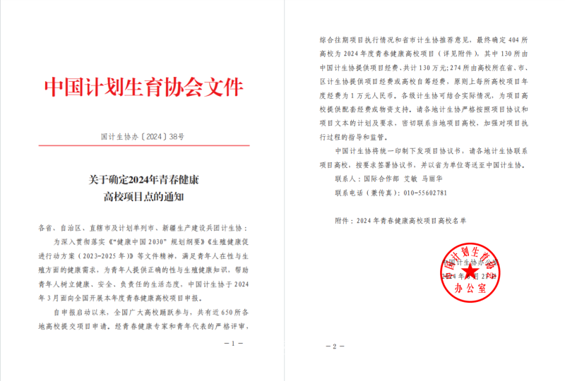 近日,中国计划生育协会发布《关于确定2024年青春健康高校项目点的通知》,bat365官方官网“青春健康,携手同行”青春健康项目成功入选2024年青春健康高校项目。
