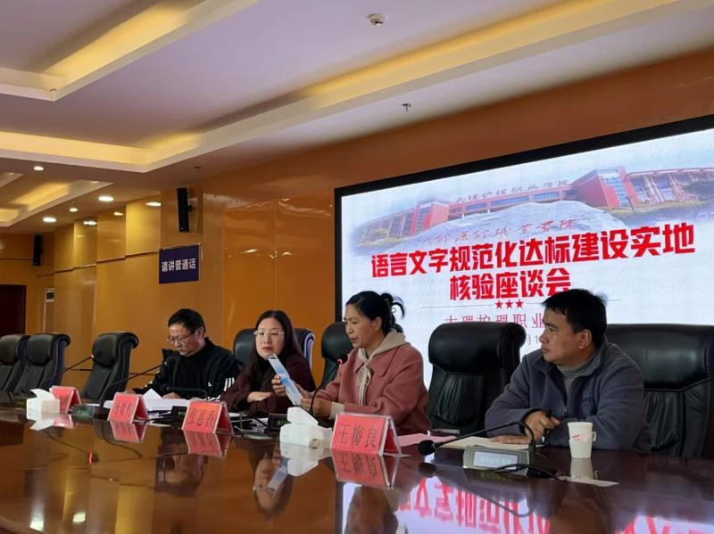 12月13日,受省语委委托,州语委验收组一行4人莅临我校,开展语言文字规范化达标建设实地核验座谈会,对学校语言文字达标建设工作进行了评估验收和全面指导。我校顺利通过语言文字达标建设评估验收。学校郭向周副院长、宣传部李大文部长、教务科茶国萍科长、语委办王树青主任及语委办成员参加会议。