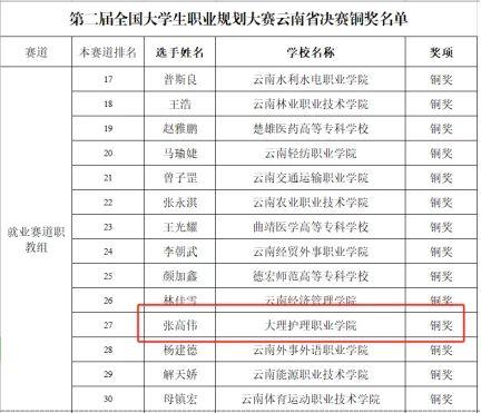 3月5-7日,由省教育厅、省工业和信息化厅、省人力资源社会保障厅、省国资委、团省委、省工商联等6部门共同主办,昆明医科大学承办的第二届全国大学生职业规划大赛云南省省级决赛在昆明医科大学圆满落幕。我校康复技术系张高伟同学获得就业赛道铜奖。