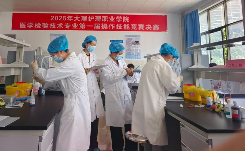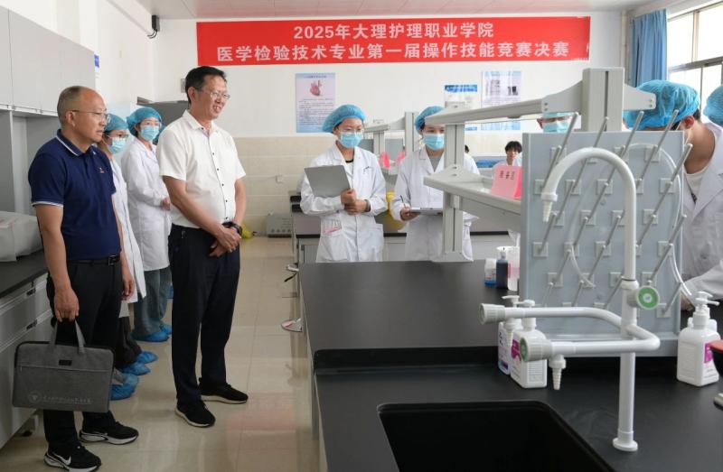 5月21日,学校医学检验技术专业第一届学生技能竞赛在医学检验技术专业实验室如期举行。学院党委书记廖惠群、院长蔡德周,副院长石龙富、李洁及教务科、实作实训科相关教师至现场观摩并指导工作。