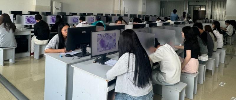 在形态学辨识模块:选手需在42分钟内完成100张形态图片的快速识别,考核范围为常见骨髓细胞、外周血常见血细胞(正常、异常),尿液细胞、管型、结晶和其他有形成分,寄生虫(卵)、微生物形态与结构等,重点考察学生对临床常见标本的精准判断能力。