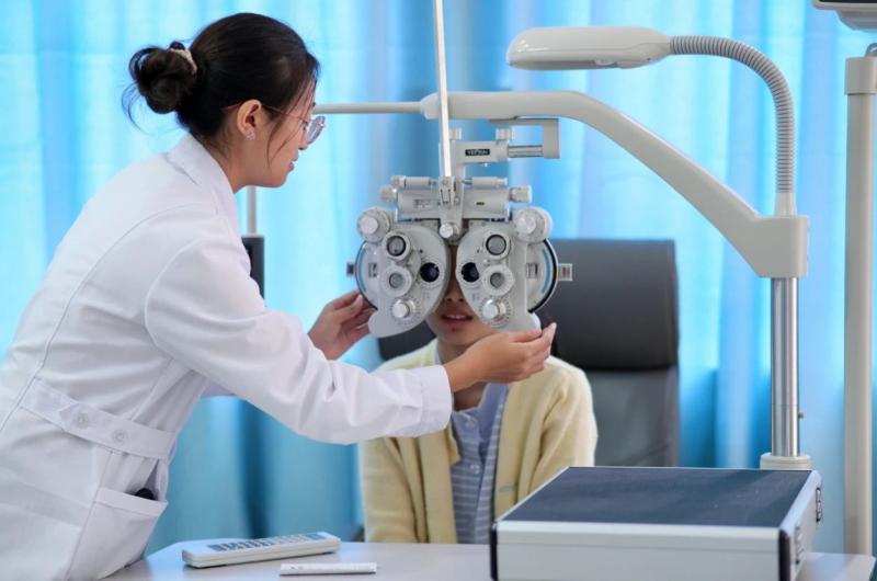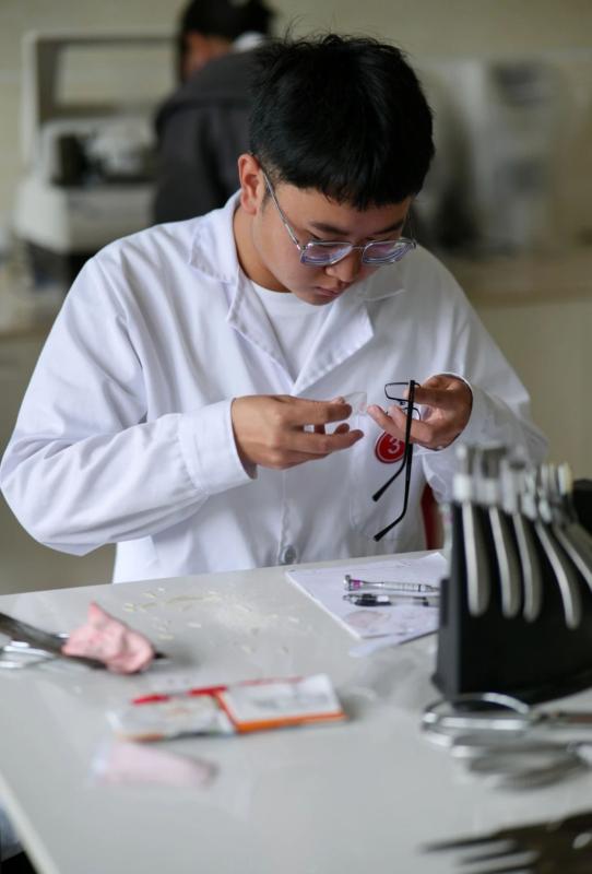 验光操作技能竞赛决赛项目分设检影验光(散光)、主觉验光和视功能检查三大项目。选手们需在规定时间内,熟练操作综合验光仪、检影镜等专业仪器,完成问诊、初始检查、精确验光、双眼视功能检查与分析等完整流程,全面考核学生规范操作、数据分析与个性化解决方案制定能力。